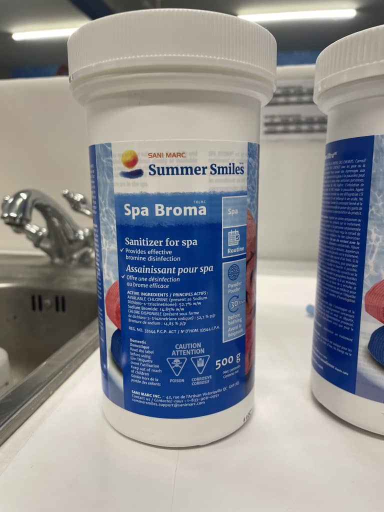 - Brome en poudre à utiliser pour éliminer les bactéries et les algues.