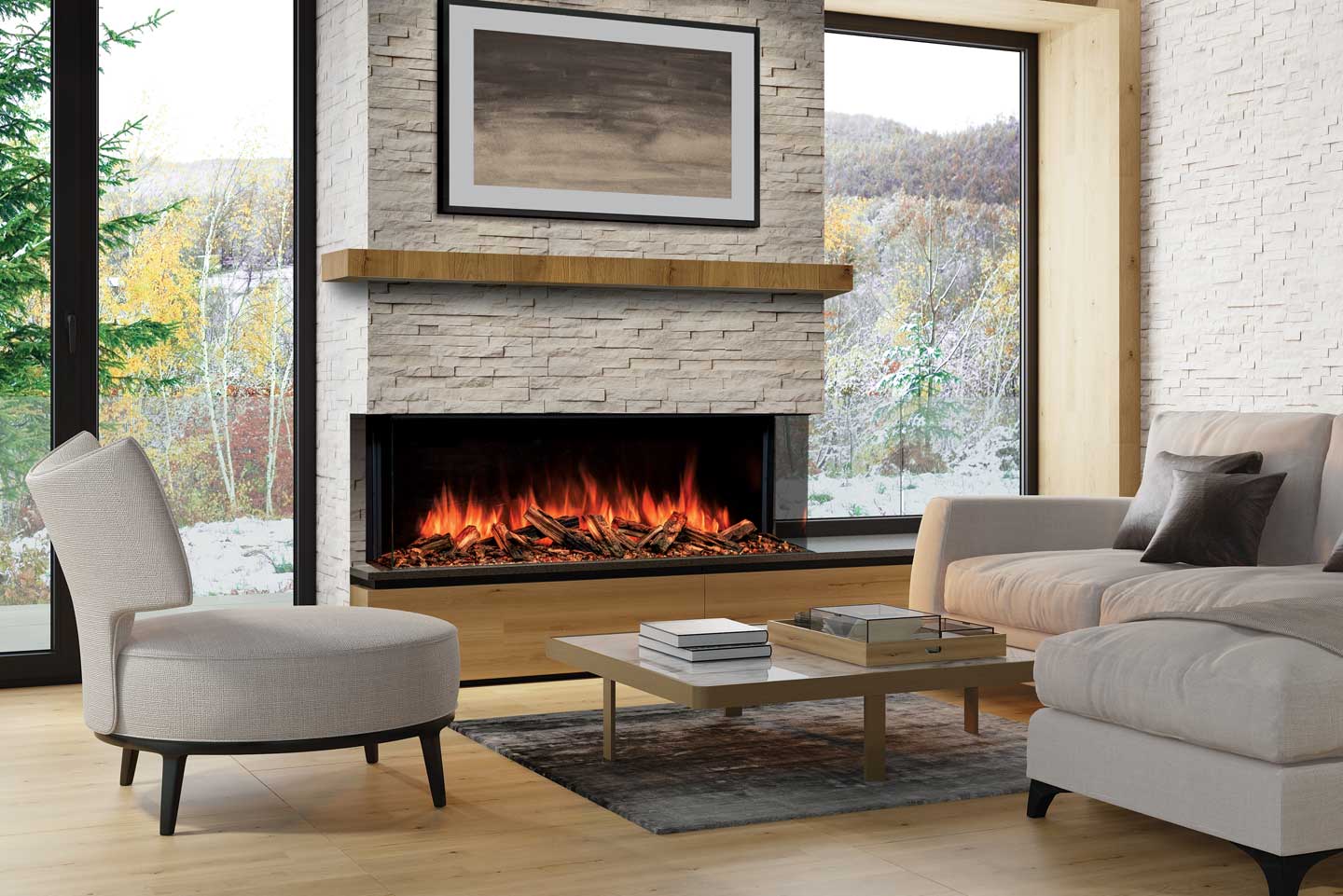 56 5/16 po (largeur) x 23 7/8 po (hauteur) x 11 7/8 po (profondeur) - Foyer électrique très grand format parfait pour un aménagement moderne et immersif